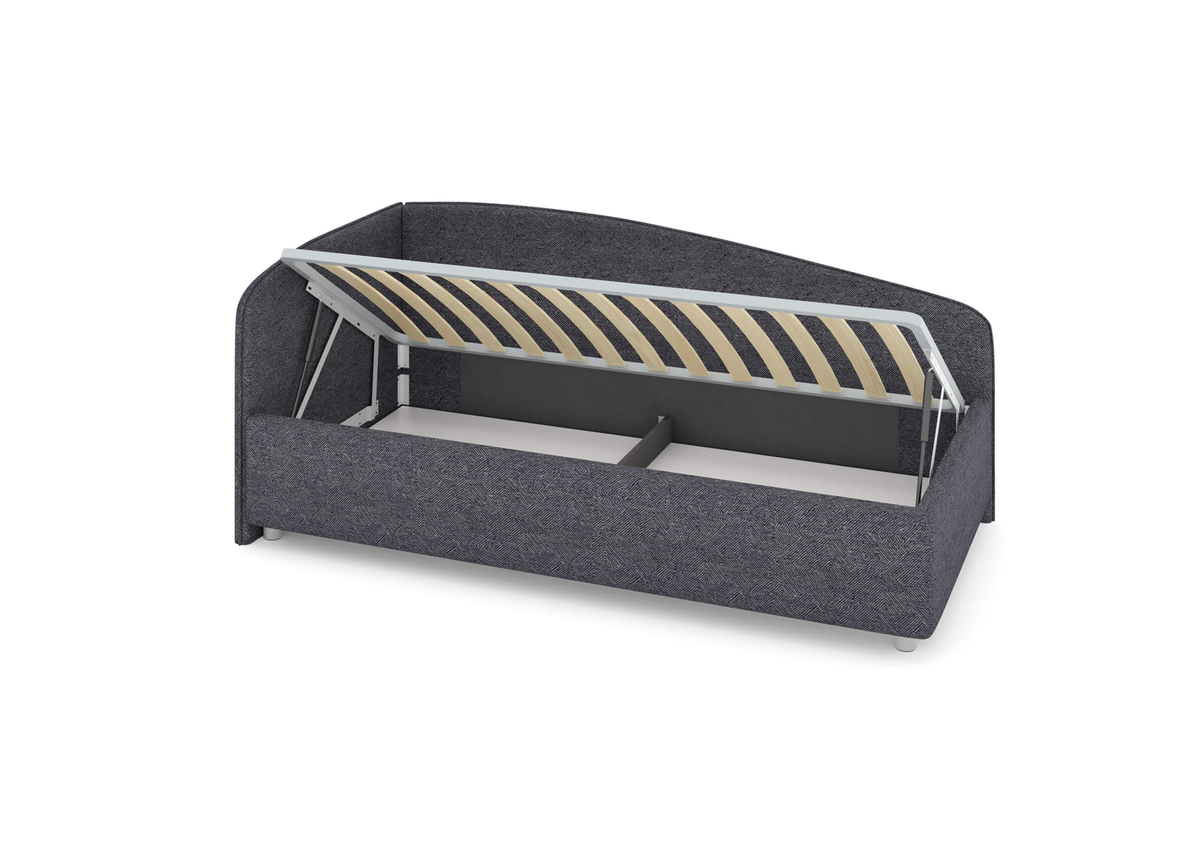 Возможна установка подъемного механизма со вместительным бельевым ящиком. Дно бельевого ящика легко сдвигается для обеспечения уборки под кроватью.