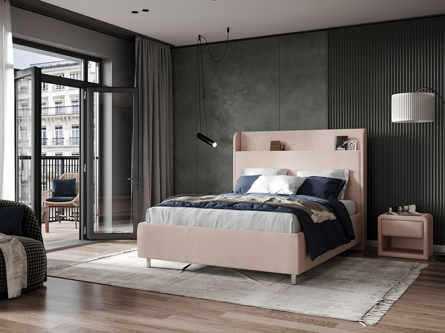 Стильная кровать Yoga включает в себя множество полезных функций! В высоком изголовье кровати расположена встроенная полочка, где может удобно разместиться ваша любимая книга, дорогая сердцу рамка с фотографией любимого человека или полезные мелочи.