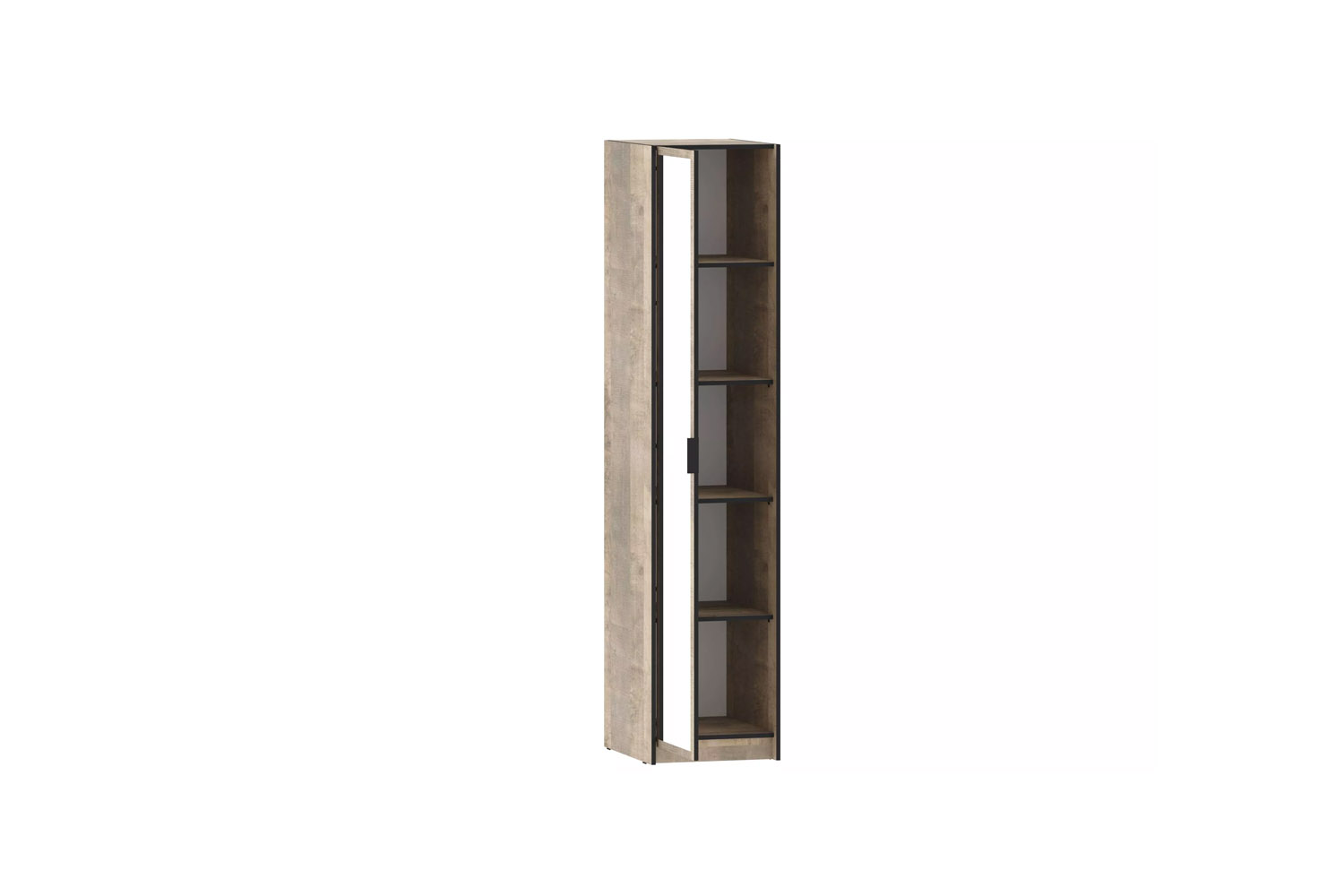 Одностворчатый шкаф из коллекции ФОЛК легко впишется в интерьер спальни в стиле Лофт, придав ей современный и монументальный вид. Черная лаконичная ручка подчеркивает оригинальный дизайн мебели, а черная кромка эффектно выделяет фасад изделия.