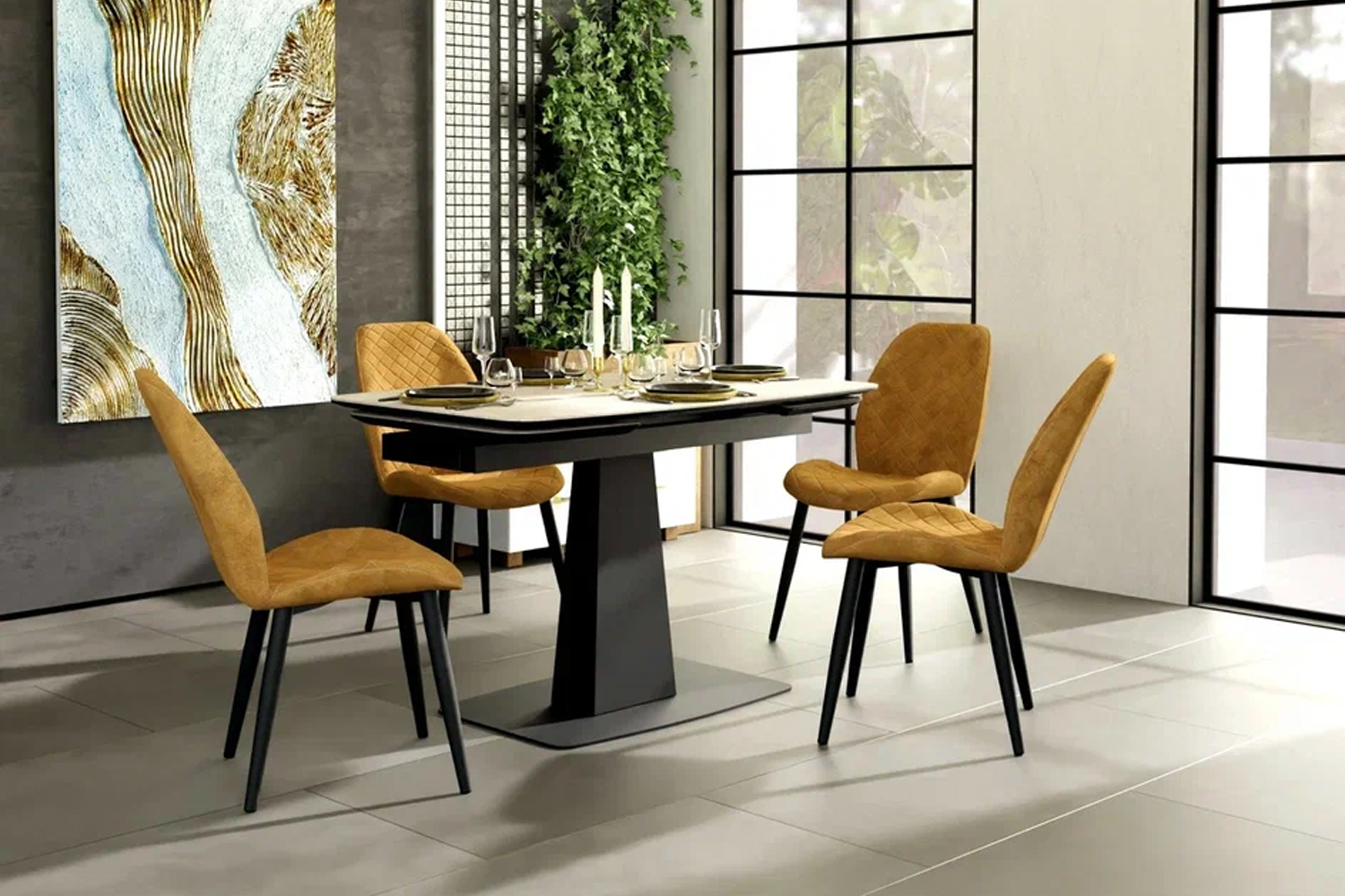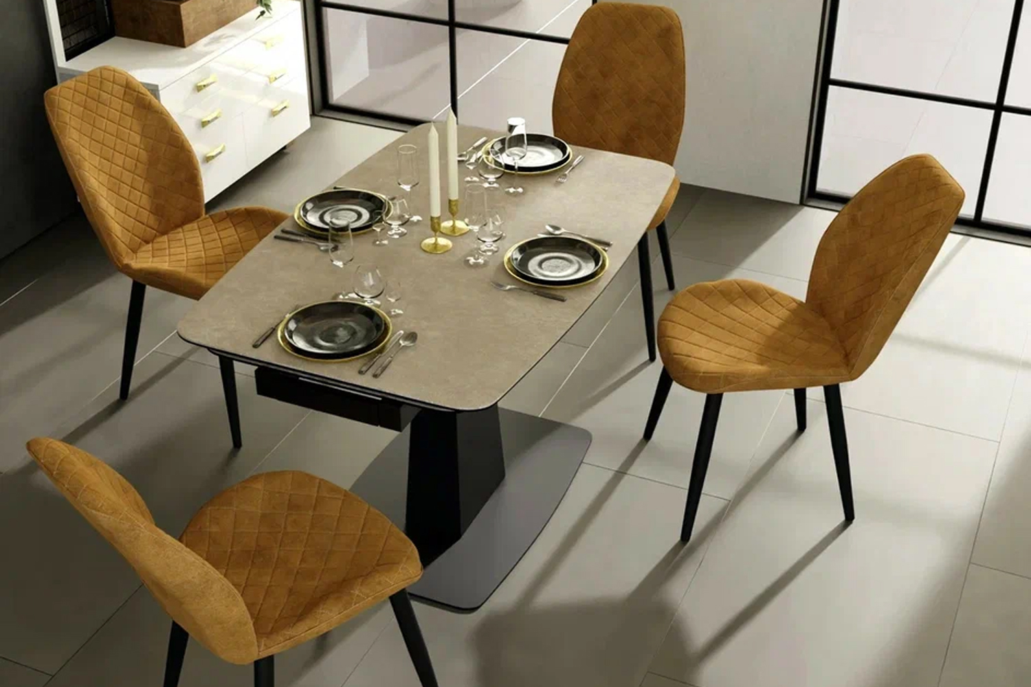 Обеденный стол раздвижной, с двумя торцевыми механизмами подъёма вставок.