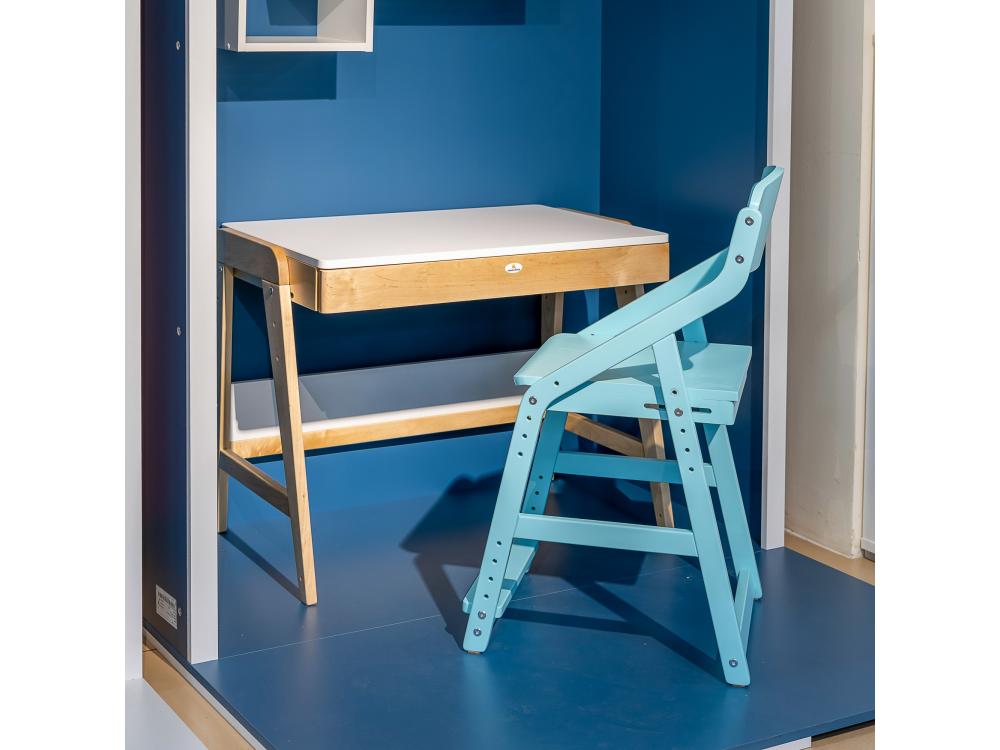 Растущий стул помогает ребенку правильно сидеть, когда он делает уроки или смотрит мультики. Анатомическая спинка помогает не горбиться, а держать спину правильно, подножка дает опору, чтобы колени образовывали угол в 90 градусов, а не свисали со стула. Стул удобно отрегулировать по высоте стола и по росту, поэтому мебель меняется вместе с ребенком и поддерживает его на протяжении взросления.